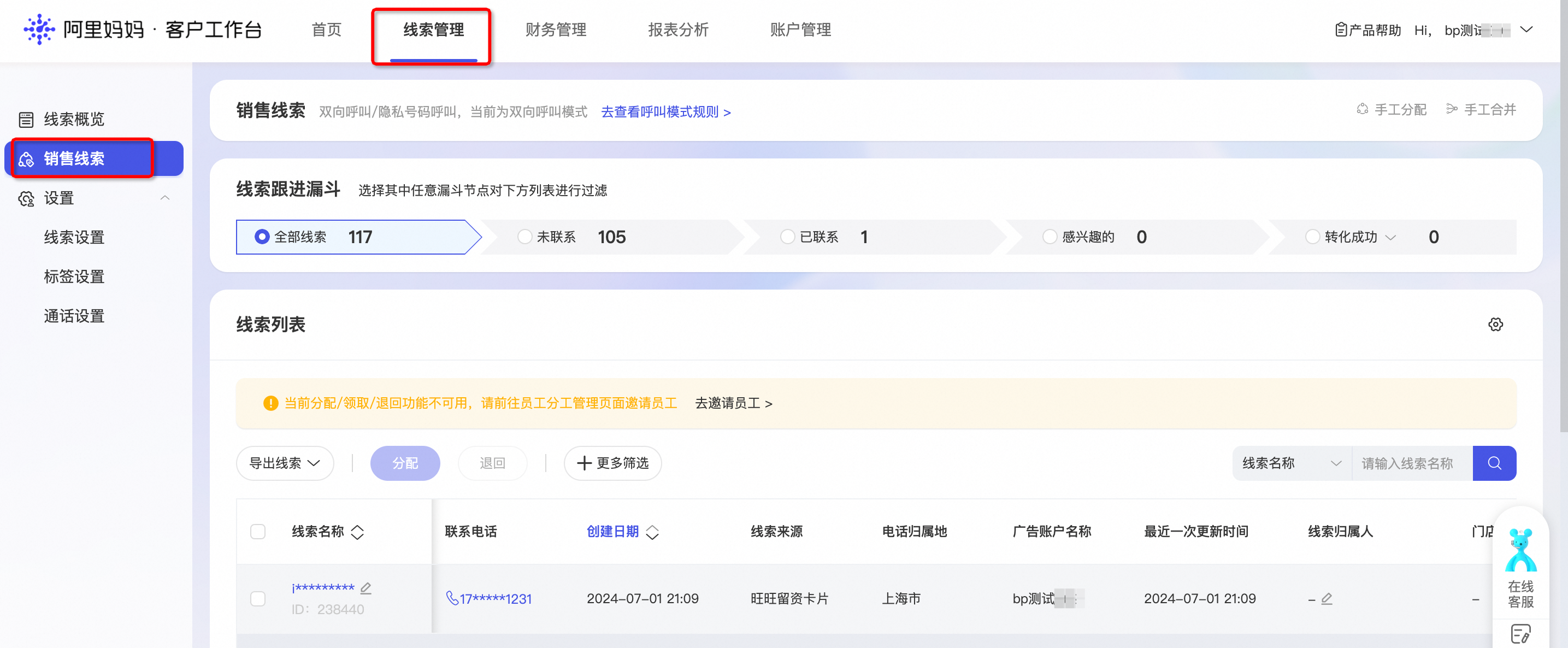 消费者发送完线索后,商家可以在千牛工作台确认留资情况,在阿里妈妈客户工作台使用留资线索。